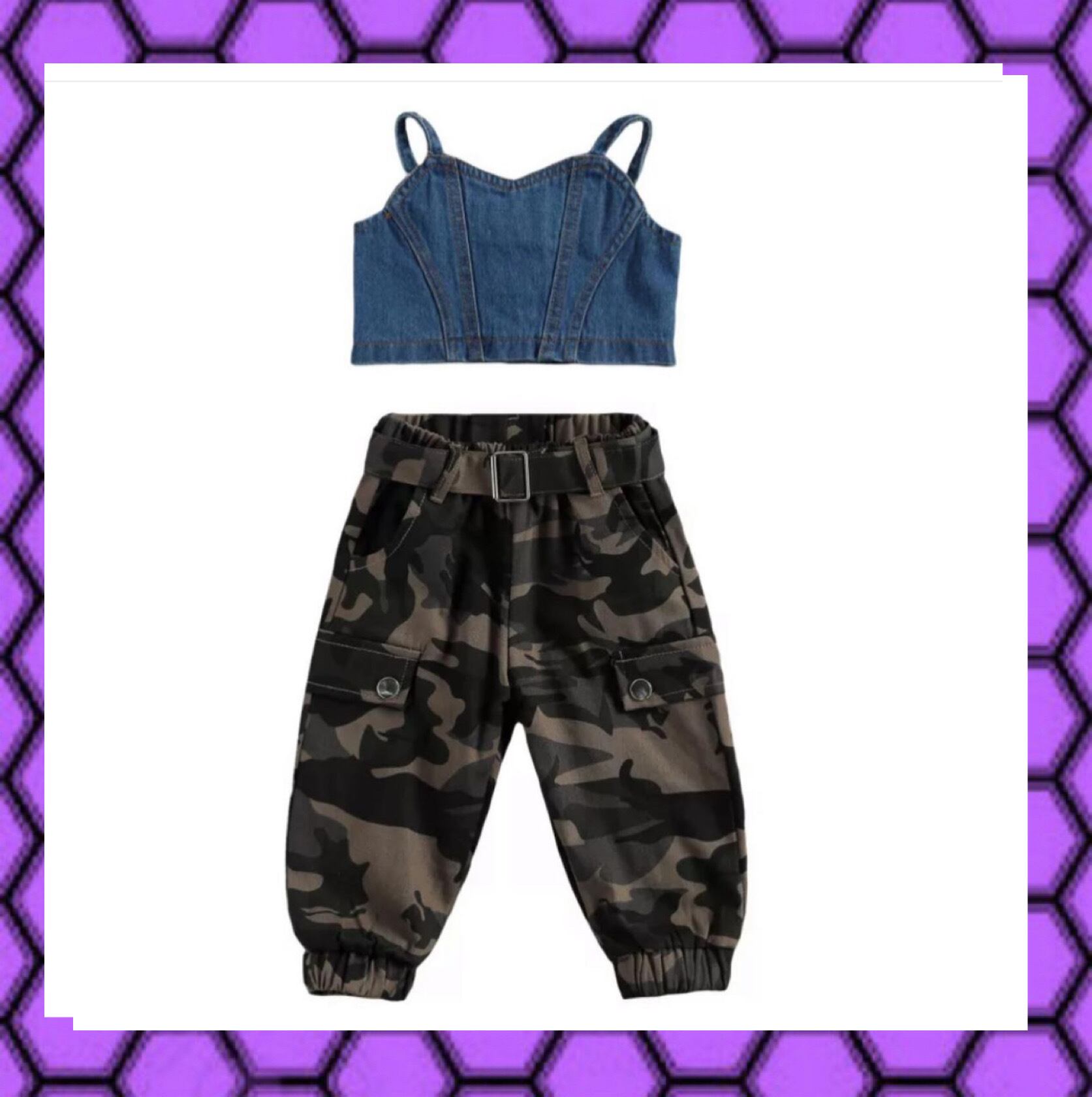 【デニムビスチェ迷彩柄パンツセット】