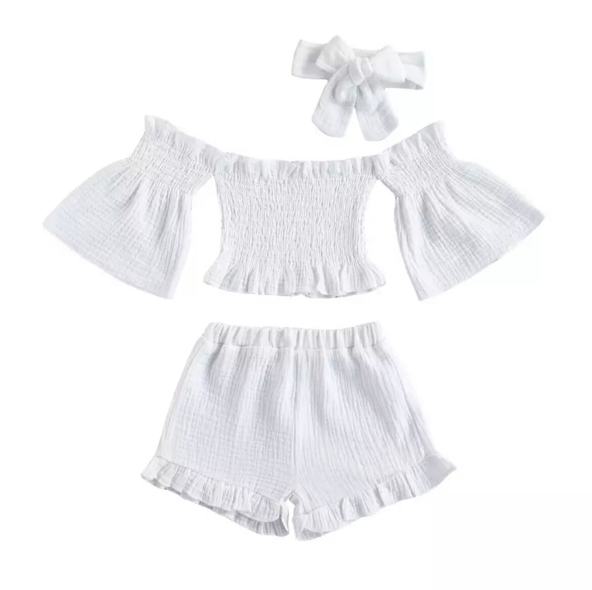 オフショルダートップス&ショートパンツ&リボンの3点セット