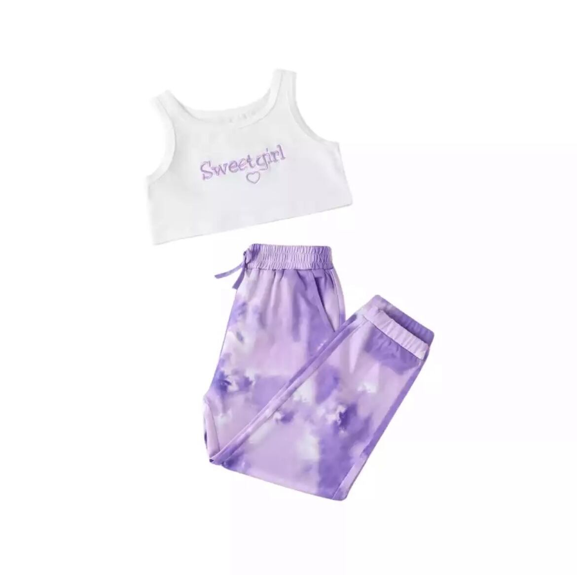 クロップド丈タンクトップ&スウェットパンツの2点セット