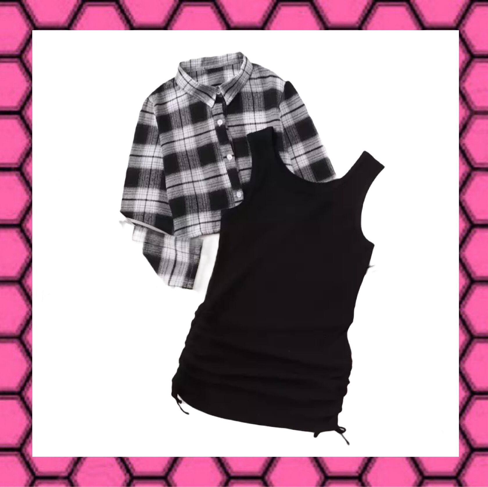チェック柄シャツ&キャミワンピースセット